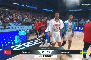 第三节,土耳其找回了自己的节奏,单节净胜13分,将战局的优势扳回到了自己手上。末节,瑞典再度发力一度将比分追平,但土耳其依靠申京的出色表现,稳稳拿下比赛,晋级八强。