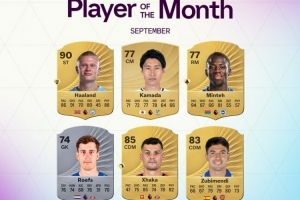 体育资讯10月2日讯 EA官方公布了英超9月最佳球员候选,哈兰德、扎卡、苏维门迪在列。