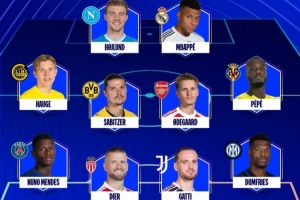 全文摘要:欧冠官方公布了本周最佳阵容。皇马前锋姆巴佩与那不勒斯前锋霍伊伦领衔,阿森纳中场诺尔高、国米后卫邓弗里斯等球员入选。恰基尔(加拉塔萨雷)担任门将,其余位置由来自多特、尤文等队的球员组成。