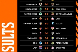 全文摘要:欧联杯第二轮结束,罗马0-1负里尔,费内巴切2-1胜尼斯,巴塞尔2-0胜斯图加特,费耶诺德0-2负维拉。其他比赛中,凯尔特人0-2负布拉加,里昂2-0胜萨尔茨堡红牛,波尔图2-1胜红星。