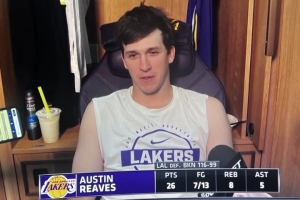 全文摘要:湖人战胜篮网后,里夫斯展望假期:计划打高尔夫,并与家人共度。本场比赛他表现出色,砍下26分8篮板5助攻,正负值全场最高。