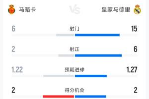 全文摘要:西甲第30轮,马略卡主场2-1爆冷击败皇马。数据显示,皇马射门、控球及传球成功率均占优,但未能转化为胜势。马略卡凭借高效的进攻把握机会,以弱胜强,终结皇马连胜势头。