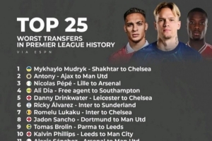 全文摘要:ESPN评出英超历史最差25笔转会,切尔西成重灾区。穆德里克天价加盟切尔西高居榜首,安东尼曼联次席。卢卡库、凯帕、舍甫琴科等名将也榜上有名,曼联与阿森纳亦有球员入选。这份榜单揭示了豪门引援的巨大风险与失败教训。