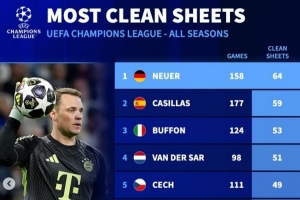 全文摘要:拜仁欧冠客场2-1胜皇马,40岁门将诺伊尔发挥神勇,多次关键扑救助球队取胜。他继续以64次零封领跑欧冠历史零封榜,巩固了自己“欧冠第一门神”的地位。