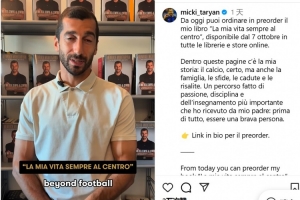 体育资讯10月4日讯 国米中场姆希塔良更新社交媒体,为自己的自传做宣传。