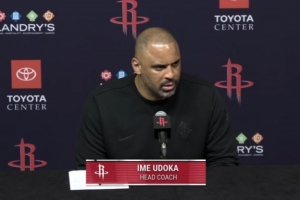 乌度卡:“能有这种替补火力当然太棒了。最近塔里找回了状态,阿隆也提供了外线投射和防守,这对我们帮助很大。但我们在比赛收官阶段必须做得更好,不管当时场上是什么阵容。虽然当时阿隆和塔里在场上,但这显然不是他们的错,我们作为一个整体表现得不够好。”