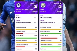 本赛季英超关键数据对比:凯塞多抢断+拦截多 罗德里对抗成功率高