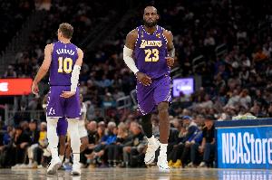 湖人公布首发:詹姆斯、八村、艾顿、斯玛特、肯纳德。