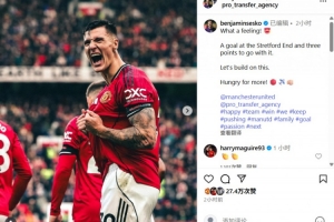 体育资讯10月5日讯 本轮英超,曼联2-0战胜桑德兰。此役舍什科建功,赛后球员更新社媒庆祝胜利。