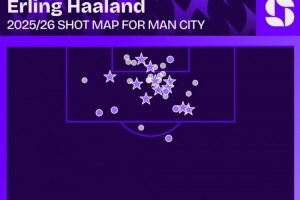 哈兰德本赛季射门数据: