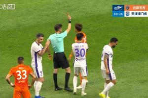 体育资讯04月17日讯 中超第6轮,云南玉昆vs天津津门虎,比赛第70分钟,张宸梁身后拉倒谢蒂内,两黄变一红被罚下,玉昆0-2+少一人作战!VAR介入检查是否构成直红,最后维持黄牌判罚。