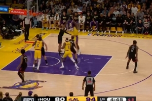 GIF-詹姆斯篮下背转身强打左手勾手