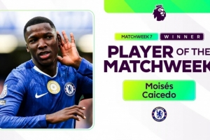 体育资讯10月7日讯 英超官方消息,切尔西中场凯塞多当选英超第7轮最佳球员。