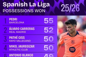 全文摘要:Squawka统计西甲本赛季夺回球权榜,巴萨佩德里以55次高居榜首,皇马卡雷拉斯52次紧随其后。巴列卡诺的西斯与毕尔巴鄂的豪雷吉萨尔并列第三,均完成50次抢断。此榜单反映了球员在前场的积极防守与压迫能力。