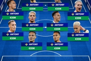 体育资讯9月2日讯 五大联赛夏窗关闭,德转整活安东尼,贝蒂斯全员安东尼。