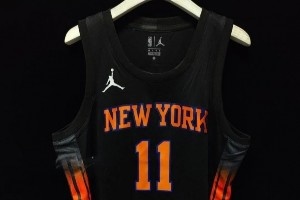 体育资讯10月13日讯 媒体Big Knick Energy报道,他们晒出了尼克斯新赛季宣告版球衣的细节图。全黑的球衣,侧面带有渐变色点缀。
