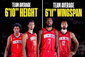 除了身高、臂展,火箭全队平均体重约109公斤(241磅),同样让他们比他们将面对的大多数对手都更重、更硬。