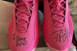 字母哥给利拉德的是他最新发布的签名鞋Freak 7,字母哥也贴心的签上了“to签”,写了利拉德的外号“Dame Dolla”。