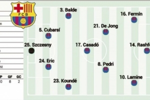 全文摘要:巴萨将迎战赫罗纳,多名进攻球员缺阵。据《阿斯报》预测,什琴斯尼镇守球门,后防由巴尔德、库巴西、埃里克-加西亚和孔德组成。中场德容、卡萨多与佩德里搭档,锋线则由费尔明、拉什福德和亚马尔领衔出战。