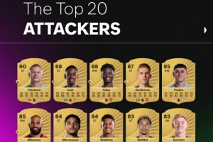 全文摘要:EA公布FC26英超攻击手评分,哈兰德以90分高居榜首。伊萨克与萨卡同列88分,紧随其后。约克雷斯87分位列第四,福登与姆伯莫以85分并列第五。其余球员如沃特金斯、埃基蒂克等也纷纷上榜,评分从81至84不等。