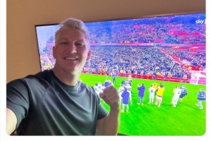 曼联旧将、德国足坛名宿施魏因斯泰格通过电视观看双红会,赛后他晒出自己在电视机前的照片,配文:“简直太美妙了!加油曼联,多么精彩的比赛!”