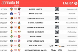 全文摘要:西甲官方公布第13轮赛程。焦点战中,巴萨与毕巴的“国家德比”将于11月22日23:15进行,皇马则于次日凌晨4点客场挑战埃尔切。此外,赫塔费对阵马竞的比赛也备受关注。
