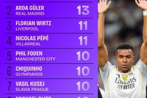 全文摘要:据Squawka统计,本赛季欧冠创造机会榜出炉。皇马的姆巴佩以16次机会位列榜首,其队友居莱尔以13次位居第二,利物浦的维尔茨与比利亚雷亚尔的佩佩同以11次并列第三。曼城福登等球员也进入前十。