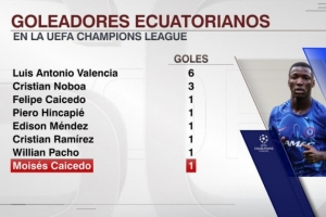 欧冠比赛进球厄瓜多尔球员: