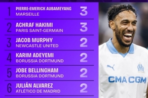 全文摘要:截至本赛季欧冠前三轮,奥巴梅扬与阿什拉夫以3次助攻并列助攻榜榜首。墨菲等9名球员以2次助攻并列第二。