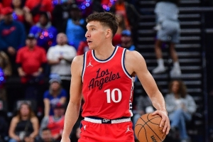 本场比赛,快船首发:哈登、博格丹-博格达诺维奇、莱昂纳德、小德里克-琼斯、祖巴茨。