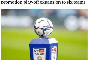 全文摘要:英冠升级附加赛拟扩军至6队,新增一轮单场淘汰赛。第五至八名先对决,胜者与第三、四名进行两回合半决赛,胜者会师温布利。此方案获广泛支持,若英超不反对,下赛季或实施,为赛季收官注入更多激情。