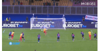 卡马达主罚点球射门被瓦尼亚神勇扑出。