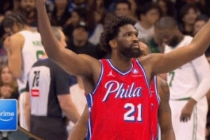 GIF-恩比德打成2+1煽动主场球迷气氛