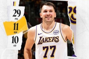 赛后湖人发布东契奇三双数据海报,并写道:生涯第83次三双。