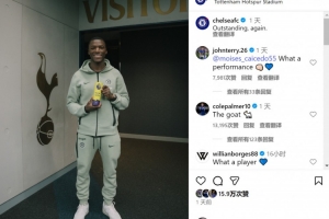 凯塞多当选本场比赛最佳球员,他与切尔西社媒展示全场最佳奖杯,特里、帕尔默留言。