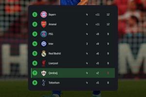 实时积分榜方面,卡拉巴赫凭借对切尔西的领先已经来到欧冠第7位,此前他们在欧冠正赛中先后战胜本菲卡和哥本哈根,头2轮收获2连胜。
