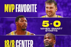 斯玛特:首发时湖人5胜0负