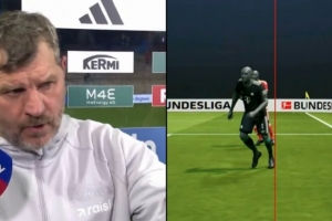 赛后,柏林联主帅鲍姆加特向记者抱怨:“第一个球应该算作进球。仅仅因为5毫米的差距就判越位——我们这里谈及的真的是5毫米——有些人简直是疯了。”