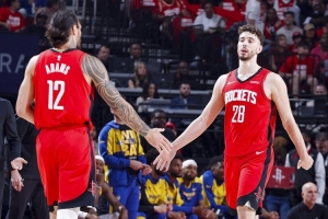 记者:“和亚当斯一起打球你有多享受?”