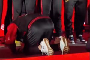 体育资讯11月10日讯 今日重庆铜梁龙进行了冲超庆典,在晚会上,赛季中途接手球队的主帅张外龙感谢了球员们的努力,并向队员们行大礼致谢。