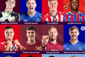 全文摘要:阿兰-希勒评选出本轮英超最佳阵容。马丁内斯镇守龙门,后防由基恩、巴拉德和坎沃组成。中场扎卡领衔,西汉姆双星费尔南德斯与绍切克在列,霍尔入选。锋线上,加纳乔、蒂亚戈和多库构成攻击线。曼城主帅瓜迪奥拉当选最佳主帅。