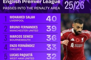 全文摘要:英超11轮战罢,萨拉赫以40次传球入高居榜首,曼联B费以39次紧随其后。切尔西恩佐与伯恩茅斯塞内斯分列三、四位。此榜单展现了球员创造进攻机会的能力,萨拉赫目前在此项数据上表现最为出色。