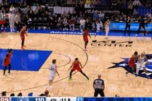 然后还是班凯罗,一条龙上篮打进还要加罚,结果罚球不中,双方战成112-112平,还剩4.5秒,开拓者的球权。
