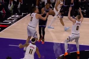 GIF-威少传球砸脚 掘金四人摊手