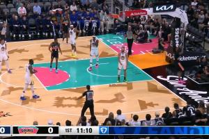 下半场换成了主色调浅蓝色Curry12的球鞋