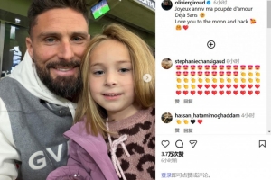 体育资讯11月19日讯 法国前锋吉鲁如今重返祖国效力里尔,作为一名父亲,他在社交媒体上晒出了自己和女儿的合照并祝其5岁生日快乐。