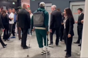 体育资讯9月15日讯 在米兰1-0击败博洛尼亚后,伤退的迈尼昂被拍到拄拐离开球场。