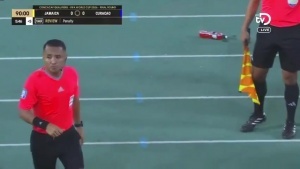 此役牙买加第95分钟获点球,原本有机会1-0读秒绝杀库拉索,直通美加墨世界杯。然而裁判看完VAR后取消点球,牙买加最终无缘直通。当点球被取消时,库拉索电视台的解说员疯狂庆祝,鬼哭狼嚎。