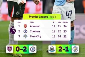 体育资讯11月23日讯 英超第12轮多场战罢,切尔西赢球后反超输球的曼城升至英超第2。