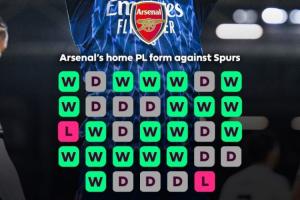 英超时代,阿森纳此前主场对阵热刺33次,斩获19胜12平,只输了2次。输的两场分别是2010年11月的2-3,以及1993年5月的1-3。